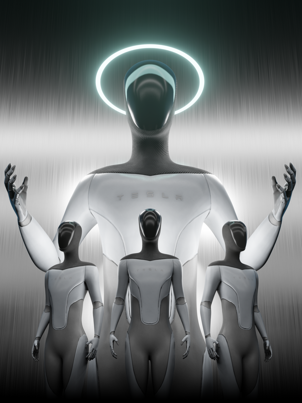 This is a PBR game-ready 3D model of the tesla bot, modeled in Blender in High to low poly workflow, Textured in Substance Painter.
